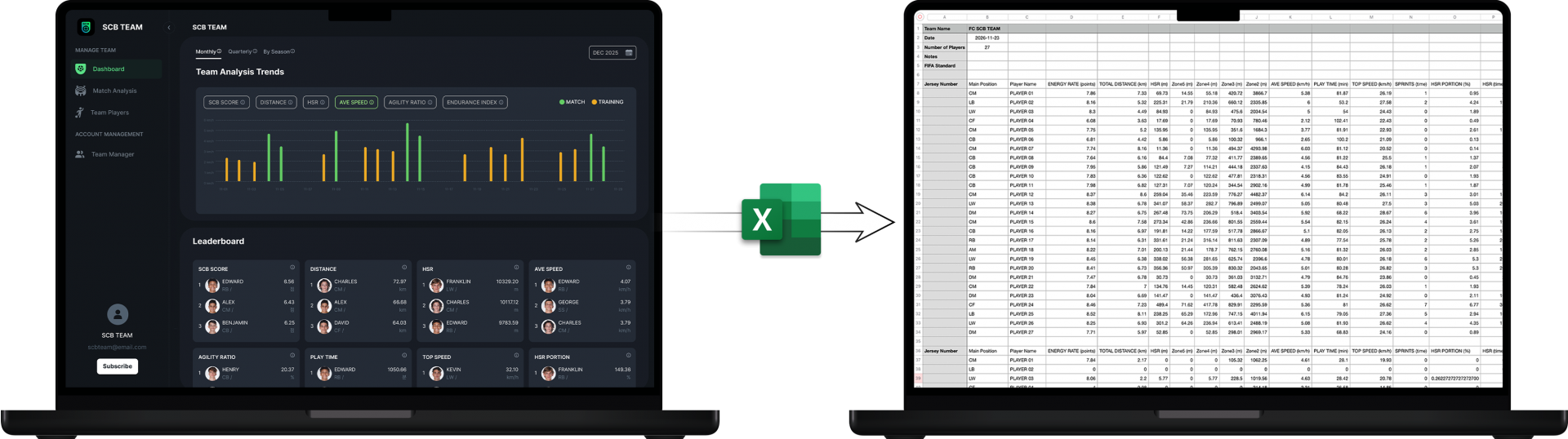 偉大なチームは、一瞬の輝きではなく、一貫性によって築かれます。SCB TEAMを使えば、チーム全体のパフォーマンスデータが可視化・追跡され、チームとしての信頼性と成長を示すことができます。チーム全体のOVRスコアをモニタリングすることで、努力の測定定と戦略を改善し、価値を証明できます。